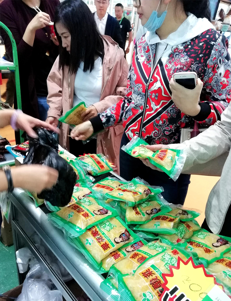 翠花工作人員細(xì)心介紹產(chǎn)品特點(diǎn),顧客們紛紛購買翠花酸菜,翠花品牌值得信賴,好酸菜成就好品牌!
